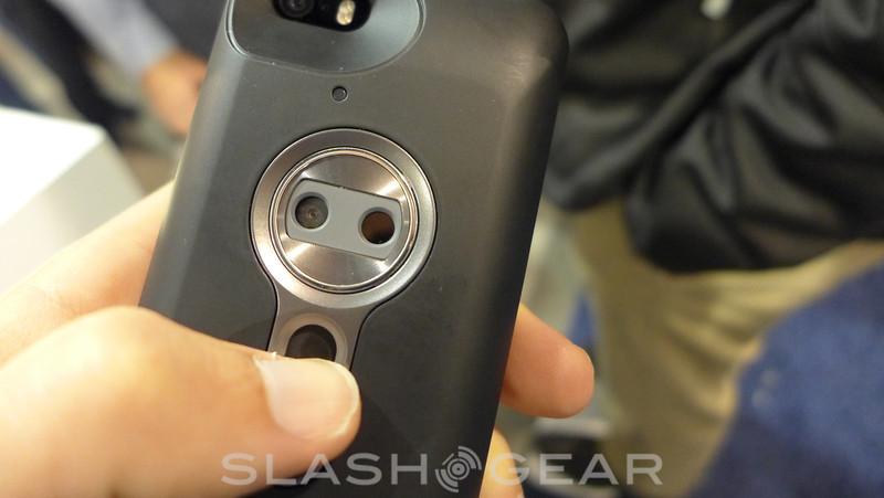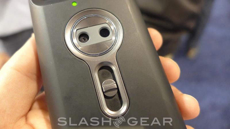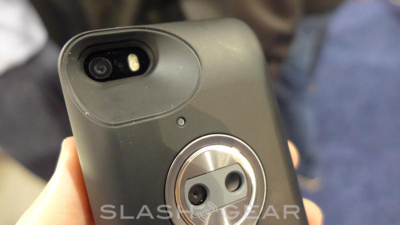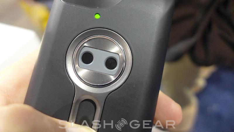 The FLIR ONE case slips on the iPhone from the bottom, and while it does provide some extra bulk — there is also the added ability to capture thermal images. The case will be available in a few colors and also sports a built-in battery that can add a bit of extra life to your internal iPhone battery. The folks at FLIR told us it would bump the internal battery by roughly 50 percent.