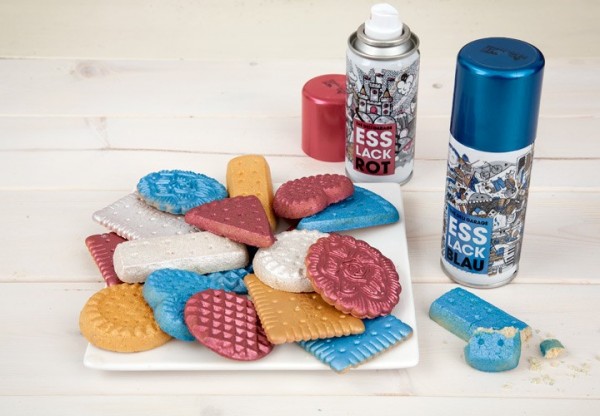 This spray is amazing, comes in several lovely colors, and is both without odor and without taste. Food Finish is what it's called, and it was developed by a group called The Deli Garage in collaboration with a small food factory that generally specializes in high-quality fine pastries with otherwise also-odd food colorings. And before you ask – yes, more than likely if you spray this stuff on a wall, it'll wash off if you lick it. But don't quote me on that. The Snozberries taste like Snozberries.