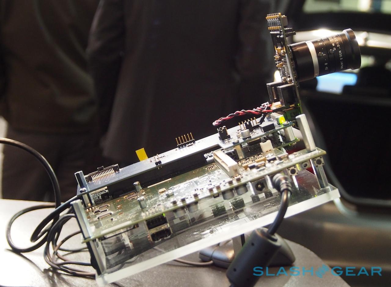NVIDIA took an off-the-forecourt 2014 car, cut straight into the CAN – the communications network cars use – and ditched the standard dashboard. In its place went a 3D-printed custom dashboard with a housing for a large, inverted-teardrop touchscreen in the center stack, and a lozenge-shaped display for the driver instrument binnacle.