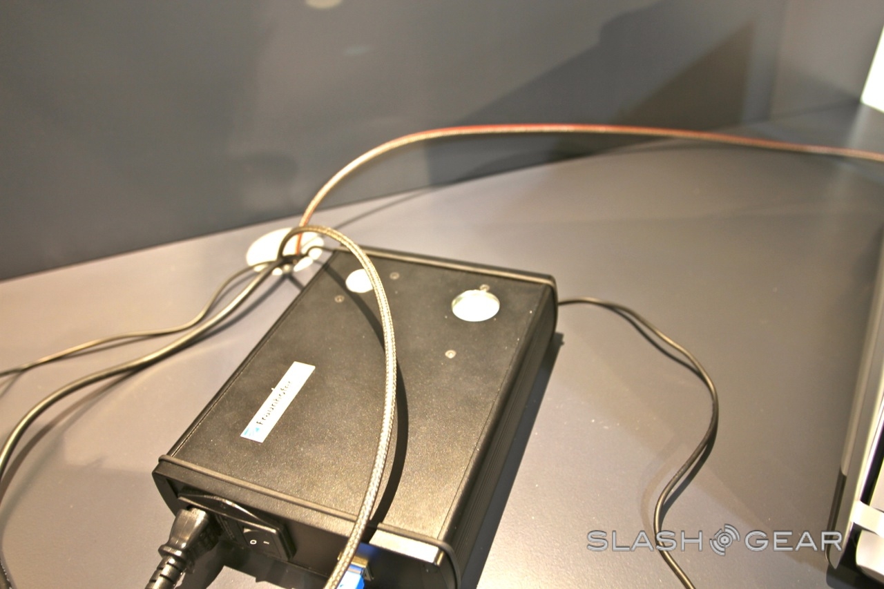 It's also potentially more secure. While it's tricky to limit the range of RF wireless systems like WiFi, or at least in a directional sense, with light it's a simple matter of blocking off where the communications signal shines and where it doesn't. Right now Fraunhofer's mono-directional prototype is a roughly mouse-sized box and USB bus powered (the bi-directional unit is roughly shoebox-sized) but the goal is something more akin to a USB memory stick. The research institute has no plans to commercialize the technology itself, but tells SlashGear that there are several prototype reference designs in the wild with potentially interested manufacturers.