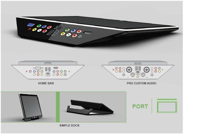If you're looking to consume multimedia, such as with an HDTV or a HiFi system of some sort, the "Home Bar" could offer HDMI, VGA, composite and component connections, along with ethernet and USB. Meanwhile, a "Pro Custom Audio Bar" might have XLR, MIDI and S/PDIF connectivity, for integrating the tablet with an existing synth, turntable or DJ system.