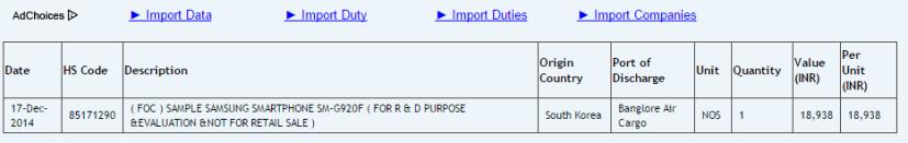 As for the possible prototype, a recent entry for a shipping manifest has appeared on Indian site Zauba, showing a listing for a Samsung device with the model number SM-G920F. The item is labeled as a R&D handset, which adds to the Galaxy S6 speculation, assuming the device is on a timeline for release in early summer. The one unexpected bit is that the smartphone is valued at only $300, hardly the amount one would think a new Galaxy would be priced at.