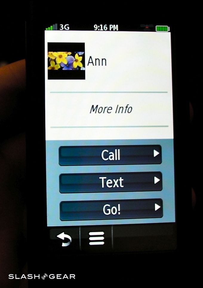 The three main icons on the homescreen have a scrolling menu bar down the right-hand side, with Garmin's new Ciao! app being the most obvious addition. Garmin confirmed that Ciao! uses location-based services such as Buddy Beacon, although you need a nuvifone in order to use Ciao! The G60's accelerometer works throughout the OS – something we wish other handset manufacturers would follow suit on – flipping orientation between portrait and landscape, and it's in the latter when the G60 feels most like a PND. There's no hardware home key, which seems like the one true interface mistake; instead you long-hold the on-screen 'back' button to return to the main menu.