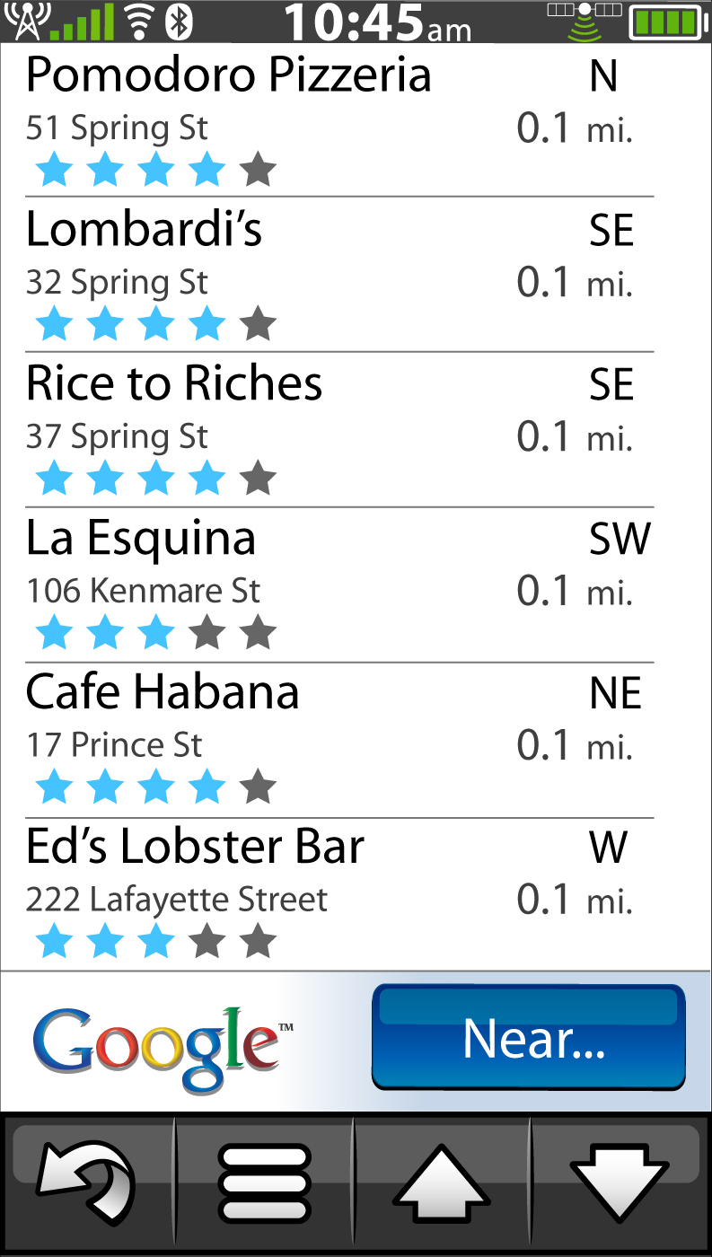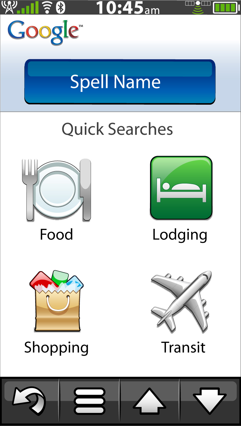 There is also a very nice Google Local feature that gives you quick search results to food, lodging, shopping and transit. From what we can see, the Garmin Nuvifone's interface will more closely resemble that of their navigations devices than what we commonly see on a mobile phone. The buttons and spacing seems to be laid out to work really well with the touch of a finger.
