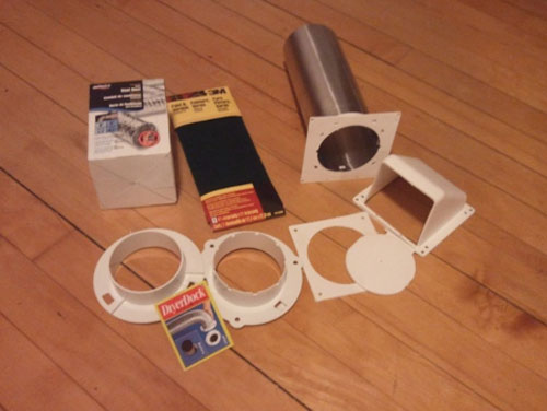 The geek took a board cut to window size to wedge under the window. He cut a hole in it and used a dryer vent kit outside hood and hose to connect to his PC. The system uses a fan inside the computer in a pull configuration to suck in cold air.