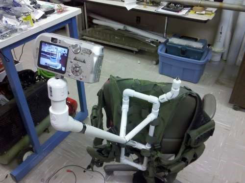 This is really weird, but it's cool at the same time. A dude going by the handle BigRedRocket on Instructables has posted up a how to, some photos, and a video on a new camera rig that he cobbled together from a backpack, a hunting vest, and some small diameter PVC pipe.