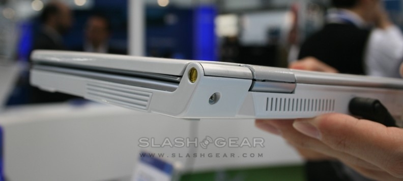 Unfortunately the narrow profile means that not only is the M1024 limited to 1GB of RAM, but there's only space for either 60GB or 80GB of storage. The netbook uses Intel's 945GSE video chipset, and has Bluetooth 2.1, WiFi a/b/g and optional 3.5G WWAN connectivity.