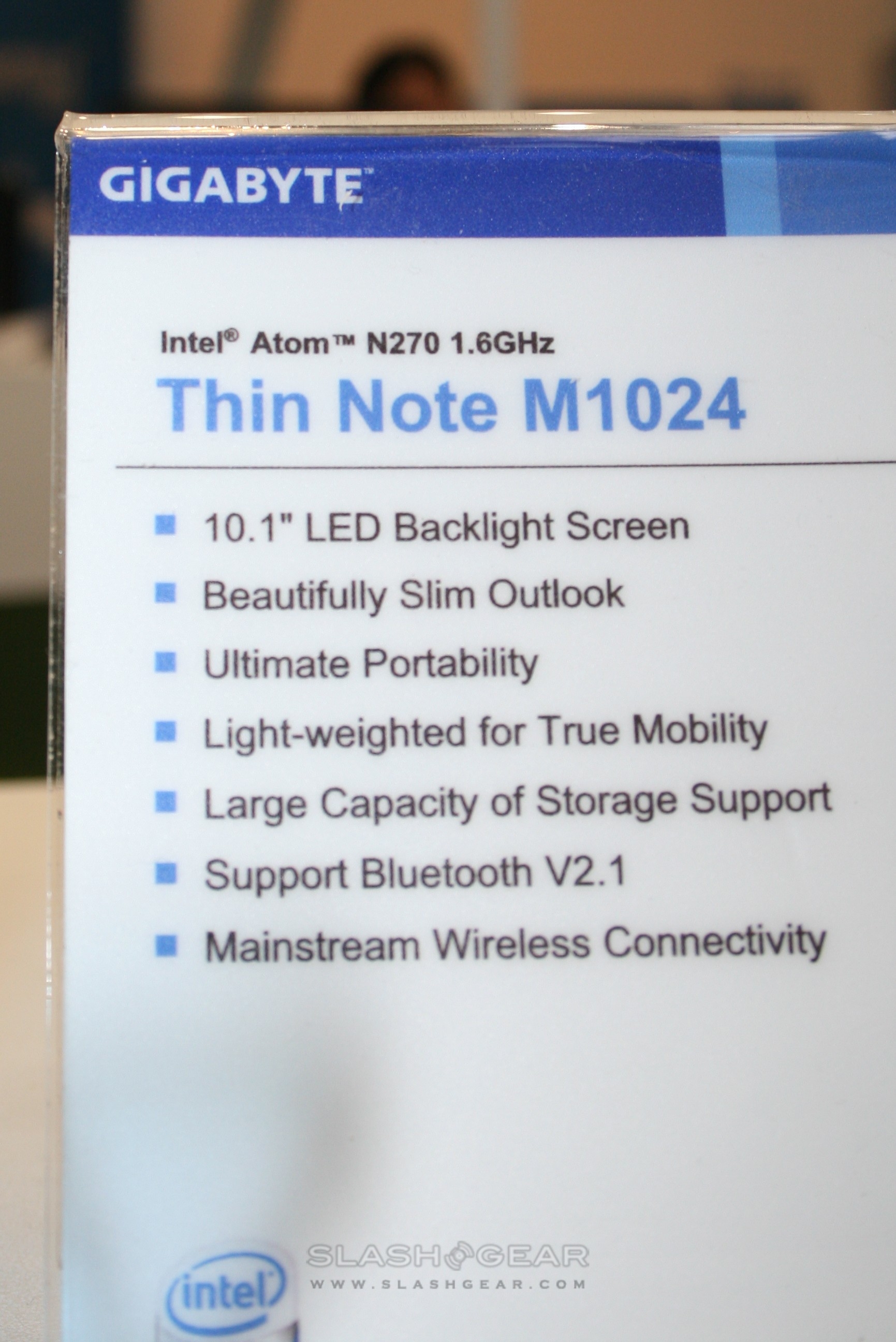 If you're going to call your netbook "Thin Note" then it has to be pretty blinkin' thin, and happily Gigabyte seem to have managed to shave a reasonable amount of bulk off of their Thin Note M1024. The 10.1-inch netbook has an LED-backlit display and Intel's N270 1.6GHz Atom CPU, paired with 1GB of DDR2 memory.