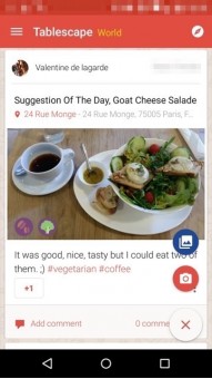 For now, Tablescape appears to be a project, where info is actually culled from a Google+ group named 'The Plate'. It also appears to be limited to Googlers for now, but the screenshots do show a fairly finished product, so we'll have to wait and see what comes of this. Or doesn't.