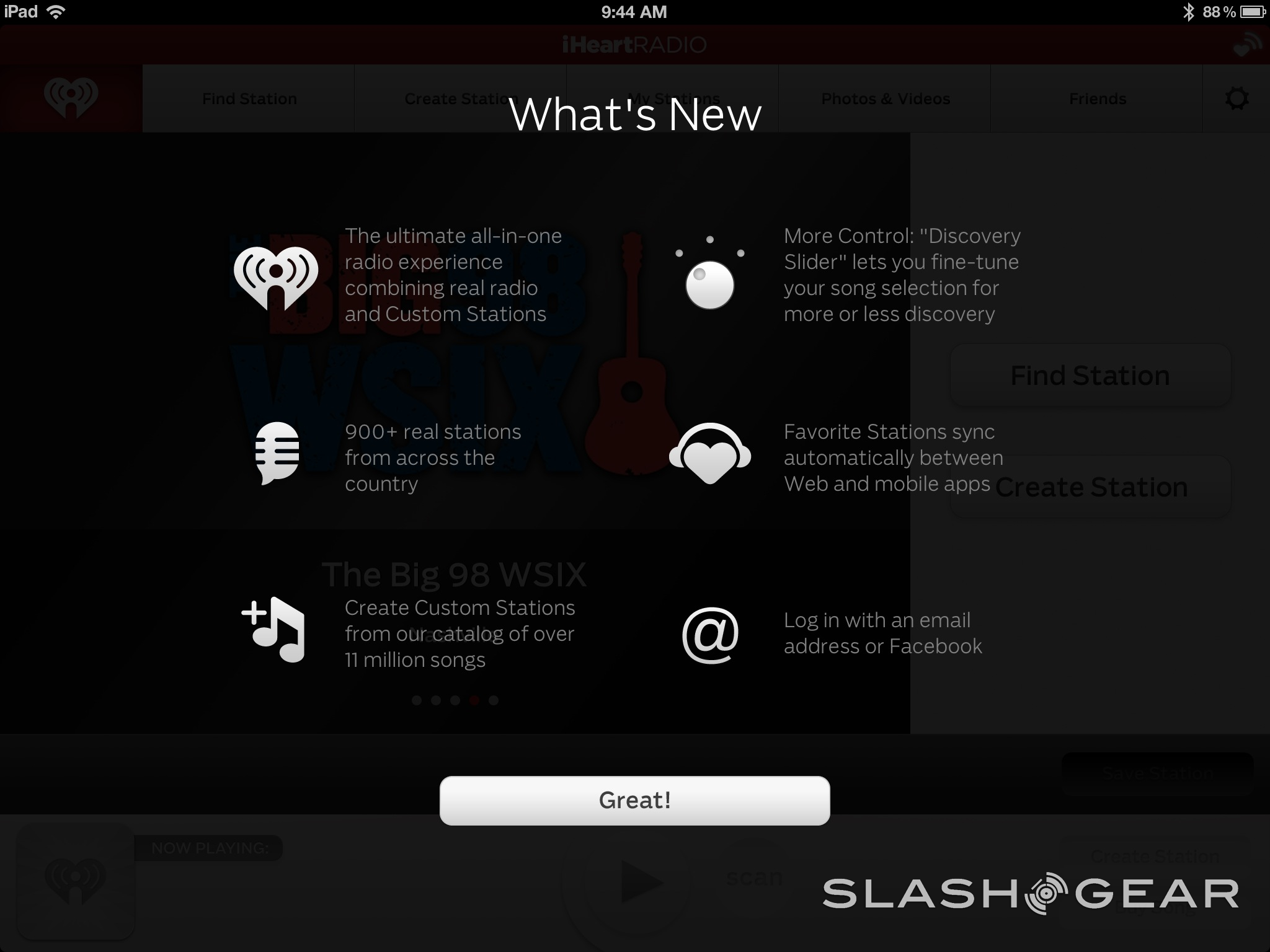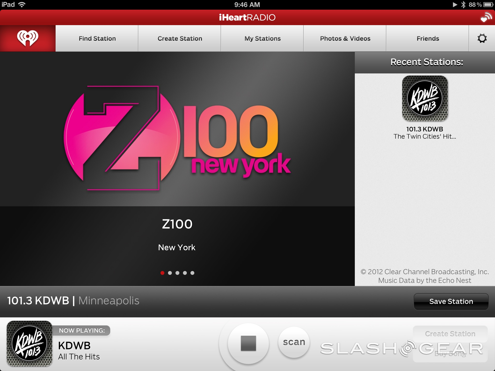 Right on the heels of one of their biggest competitors (and best buddy Spotify), Clear Channel have updated their iPad app for iHeartRadio. This upgrade to the streaming radio application has you working with deeper Facebook integration than ever before, support for the high-resolution Retina display of Apple's iPad 3 with much better looking radio station graphics as well as user interface graphics, and Custom Stations. These Custom Stations are made up of the users own collected interests and a catalog of over 14 million songs from over 400,000 artists.