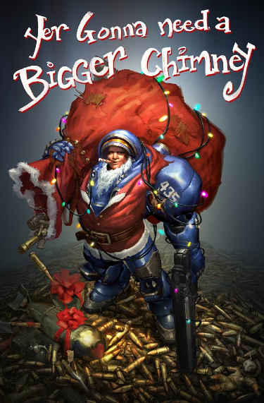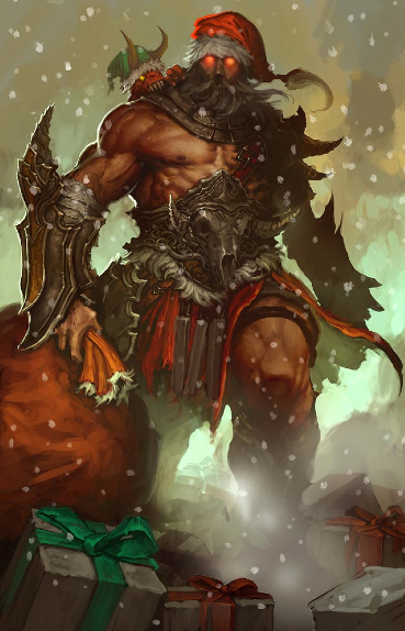 Oh it's nearly holiday time, or whatever you wanna say, and Blizzard Entertainment is definitely attaching itself to the Christmas with three heartily fancy cards that you can send to your friends, enemies, and Facebook. There's one for World of Warcraft, there's one for Starcraft II, and there's one for – YES – Diablo III. You'll find plenty of Santa inside, guns and death as well, and one gigantic barbarian that seems more intent on murdering you than giving you a positive present.