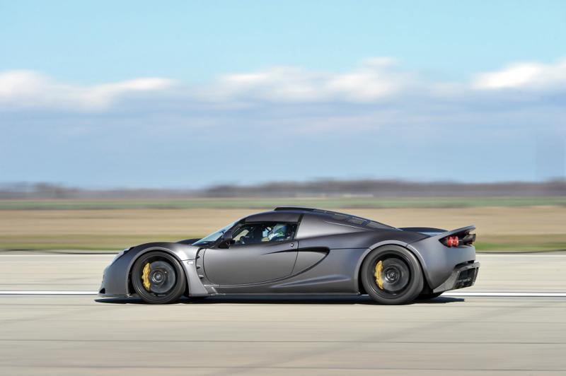 Now some of you may be confused because the Veyron Super Sport was able to achieve 267.8 mph during its tests. While it was able to, its company, Bugatti, limited its actual production vehicles to only 258 mph. Hennessey Performance CEO, John Hennessey, stated that as impressive as the Venom GT's 265.7 mph performance was, the 2.9 mile runway they were testing on was "far too short for the Venom GT to reach it's true top speed."