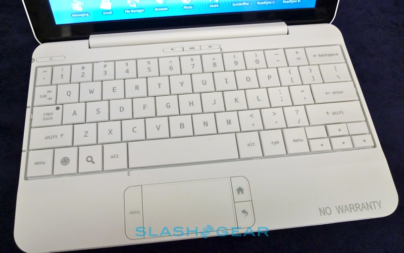 The cluster of buttons around the trackpad – Menu on the left, and Home/Back on the right – could prove a little frustrating, but in general the key-feel is good. That's despite the Airlife 100 being impressively thin, while the standard battery is good for 12 hours (though HP themselves reckon it'll likely outlast that in typical use). There's no access to the regular Android Market, however; HP have partnered with Telefonica, and the Airlife 100 will use the carrier's own app store.