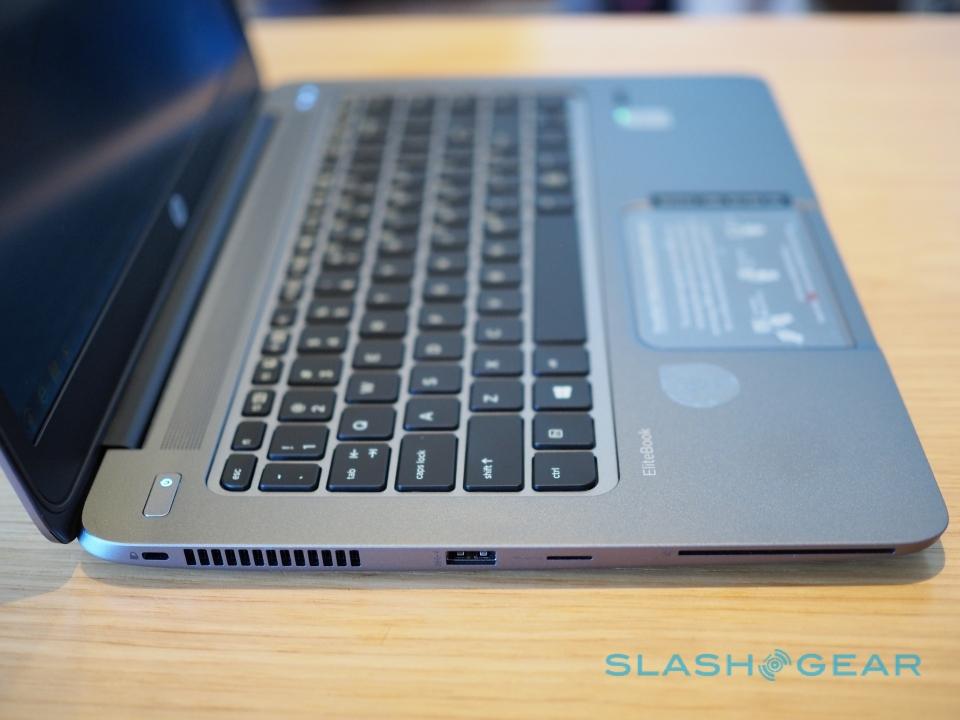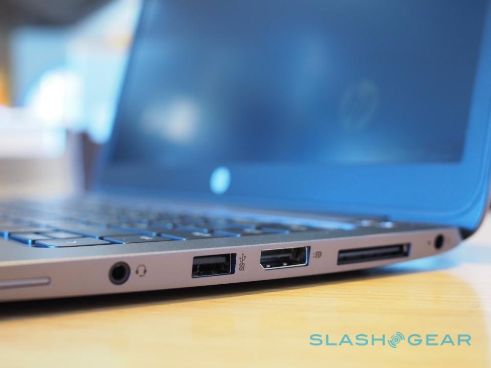 Potentially more annoying is the absence of native VGA and ethernet ports. Instead, HP throws in a combo dongle to deliver both. That hooks up to a special port on the EliteBook; you also get two USB 3.0 (one of which offers charging support even when the notebook is powered down), DisplayPort, a combo audio in/out jack, and a memory card reader, though it's a microSD rather than full-sized SD.