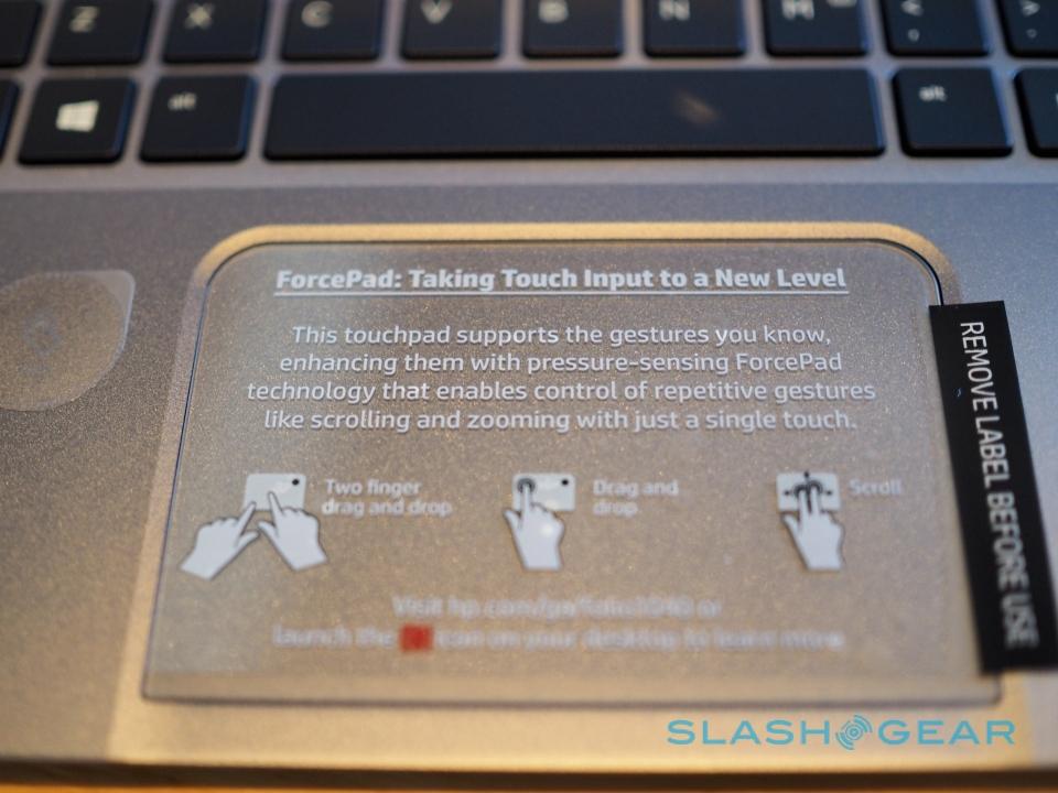 HP has been able to trim a little thickness by opting for a Synaptics ForcePad rather than the now-traditional clicking trackpad. There's no physical movement, with the pad instead recognizing pressure and translating that to different types of clicks. It's clever, certainly, but it does take getting used to: it was easy to get frustrated by how scroll speed was linked to how hard you're pressing.