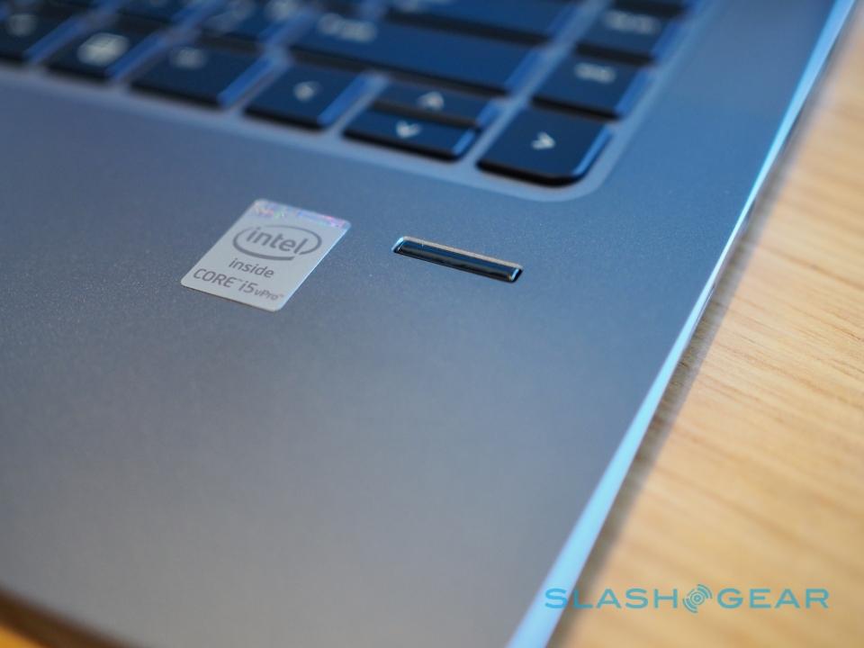 We've a feeling many users would've preferred to see a native ethernet jack and not bothered with the SmartCard reader on the left edge, though businesses may approve. Similarly, there's a fingerprint scanner built into the palmrest. HP offers models with integrated LTE, too, with a SIM slot on the side: it's great to have it accessible, since some WWAN-equipped notebooks hide the SIM behind the battery, but we'd not argue with a little extra protection to help avoid accidental removal.