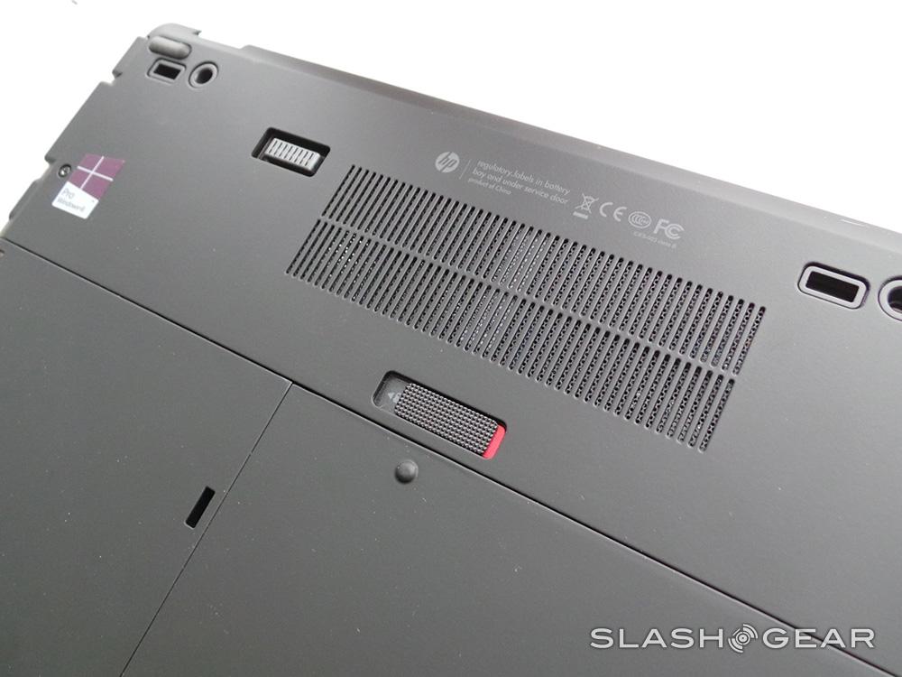 On the bottom of this machine you've got both a docking connector and a secondary battery connector. HP doesn't mess around when it comes to a strong accessories ecosystem and will certainly have your back when you look to expand with extra long-life-loving batteries and/or if you want to dock this beast up at your house when you get home from the cube. That said, the battery life on this machine is rated by HP for "up to 9 hours and 30 minutes" with its HP Long Life 4-cell (52 WHr) Li-Ion unit, and we've seen it bringing on easily 5-6 hours of up-time while using it for medium-to-heavy lifting on an average day.