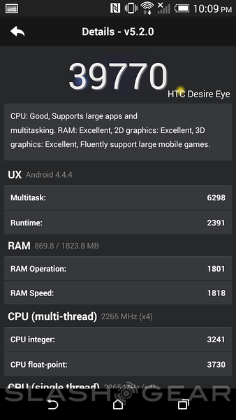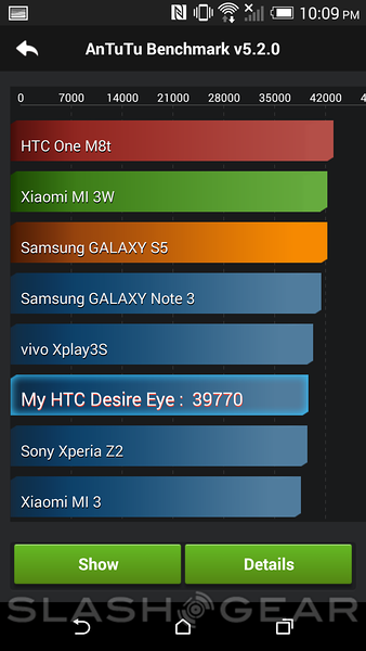 The HTC Desire EYE's 5.2-inch LCD is brilliant, though, going up against the finest displays on the market today. Have a peek at how it fares against the LG G3 and the Samsung Galaxy Note 4 here. Pretty darn nice.