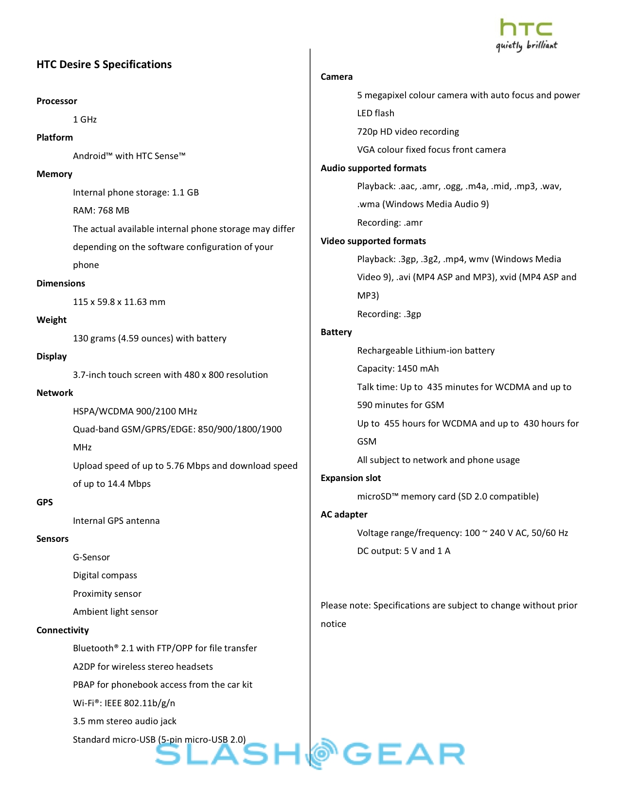 The HTC Desire S, HTC Wildfire S and HTC Incredible S smartphones, will be broadly available to customers across major European and Asian markets during Q2 2011.