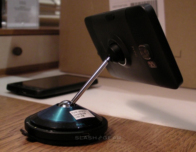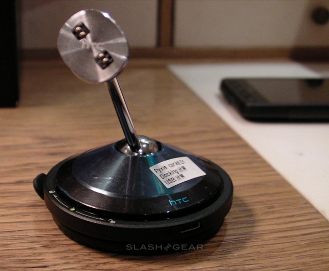 HTC have also developed a car-kit, to work in tandem with the HD2's GPS and digital compass. The kit includes an in-car dock which grips tenaciously to the dashboard and a replacement battery cover with a special docking connector; that port recharges the HD2, as well as triggering HTC's NaviPanel of PND-style functionality for easy use while driving.