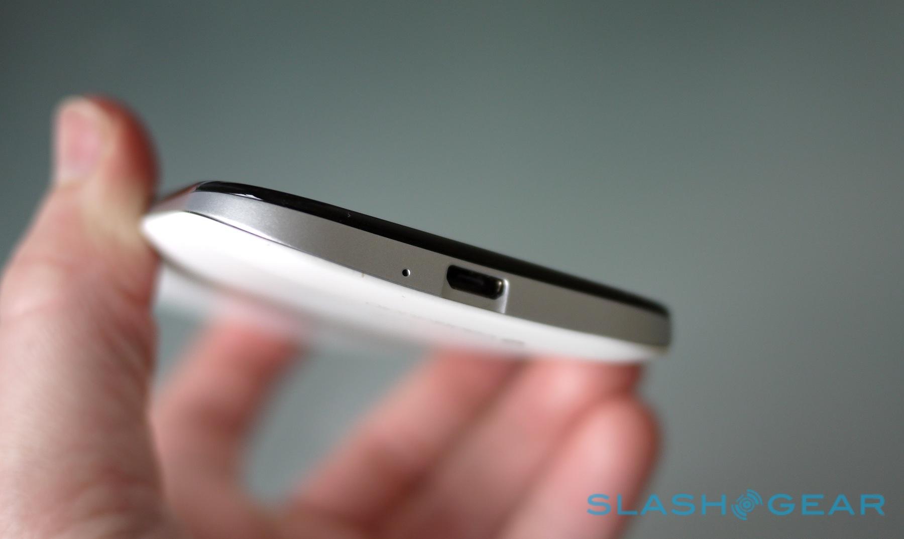 There's a 3.5mm headphone jack on the top, alongside the power/standby button, while a microUSB port is on the bottom edge and a volume rocker on the right. We were slightly surprised by how slippery the One SV could be; placed face down, it quickly found a route off the edge of our sofa and onto the floor, though happily resisted the bump. On the plus side, it's easily dropped into a pocket, and at 128 x 66.9 x 9.2 mm and 122g isn't unduly bulky. The matte white back cover did pick up dirt and smudges easily, however, while the broad, ridged earpiece spanning most of the top bezel was an instant fluff magnet.
