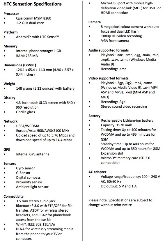"The HTC Sensation integrates multimedia content with relevant, thoughtful features, bringing an exciting new dimension to Vodafone's smartphone range. The HTC Sensation will be available first in key Vodafone markets from Q2," said Patrick Chomet, Vodafone's Group Terminals Director. "The strength of Vodafone and HTC's partnership is a marker of our commitment to offer our customers truly compelling and market-leading mobile experiences."