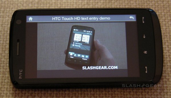 Video playback had mixed results. We had high hopes for the Touch HD's 480 x 800 display, and indeed it's richly colored, bright and shows decent, if a little murky, black levels. Playback of 720p high-definition WMV files proved a literal non-starter; we then tried a 1000kbps, 25fps, 768 x 576 WMV file, the audio of which was no problem but the picture stuttered. A 650kbps, 29fps, 320 x 240 video played with no problems at all, but a 740kbps 640 x 480 file suffered jerky video. Scaled down to 545kbps 640 x 480 the video was reasonable.