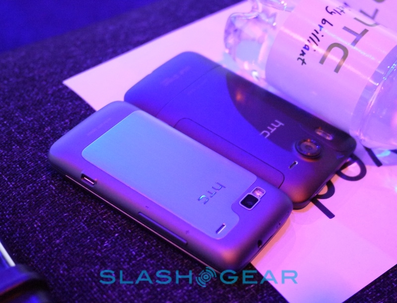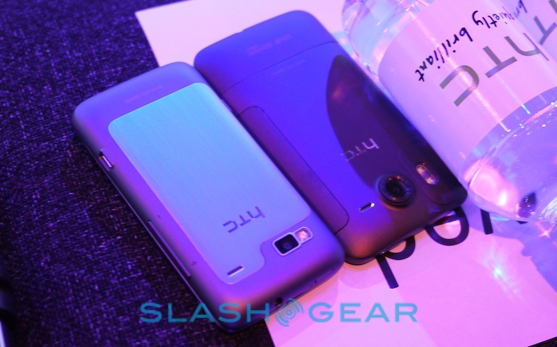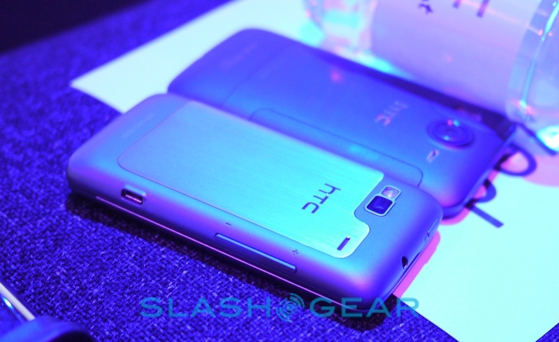 We grabbed some shots before an HTC PR rep quickly moved in and swiped them away; still there isn't long before the official unveil, so there isn't long until we know exactly what the two devices are and what their full specs are. Keep watching SlashGear for all the news!
