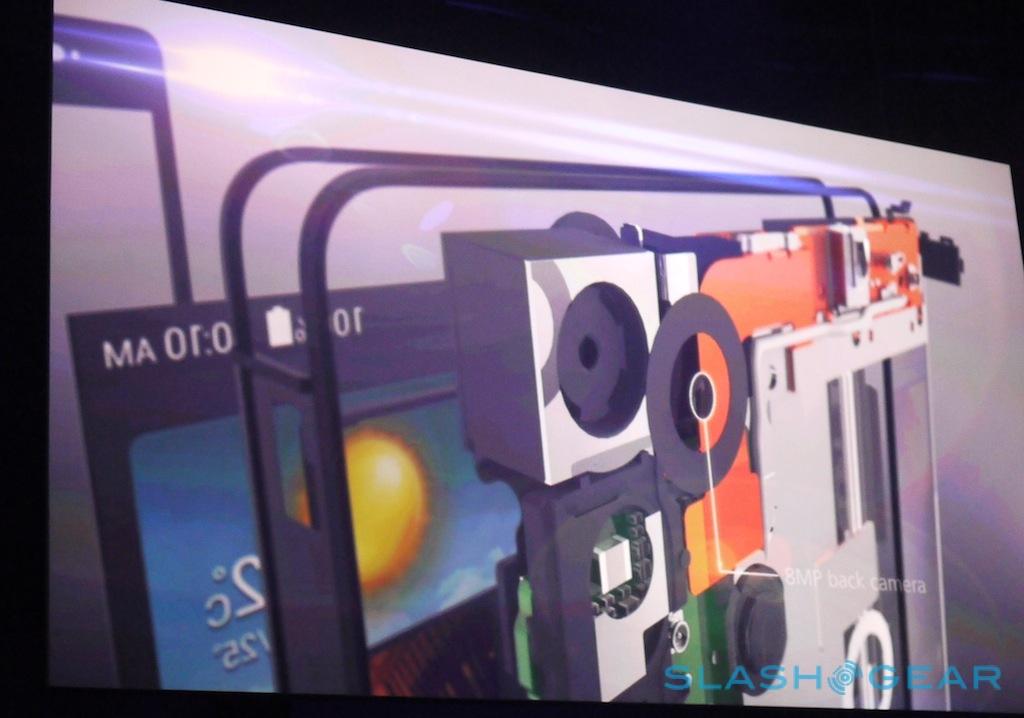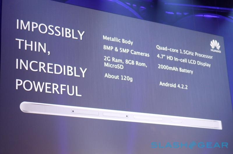 On the back there's an 8-megapixel camera, while a surprisingly high-resolution 5-megapixel camera is on the front. The whole thing weighs in at around 120g, Huawei says, and includes four hours of buffing on the aluminum back panel.