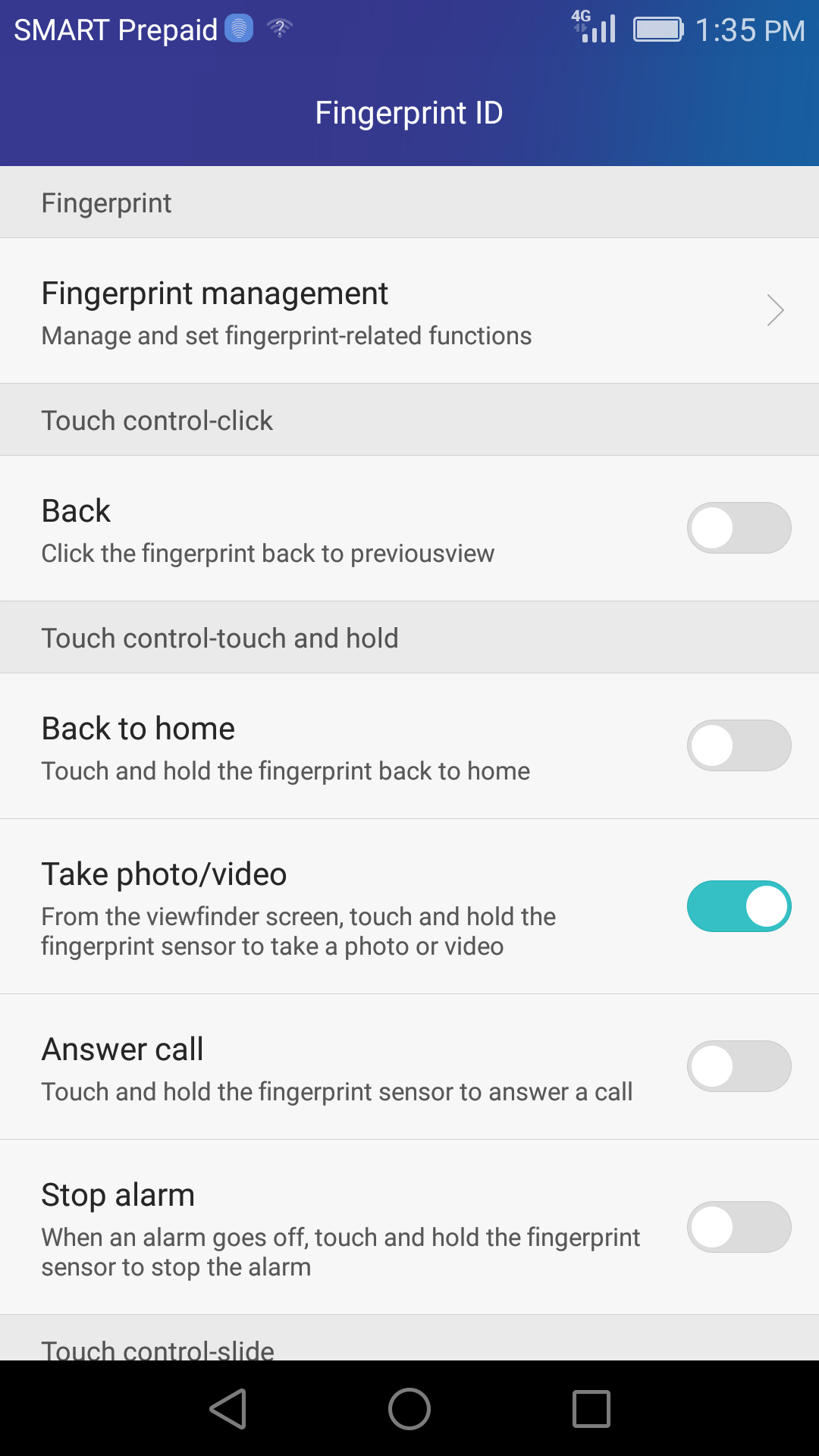 The Honor 7's fingerprint sensor also has something in store even for fingers that have not been enrolled. The sensor can accept a few gestures, made by any finger, to perform some actions. For example, a long tap can send you back home, sliding down will also slide down the notification panel, while sliding up brings up recent apps. This is definitely more than what more common sensors allow and is a great way to reuse that small space.