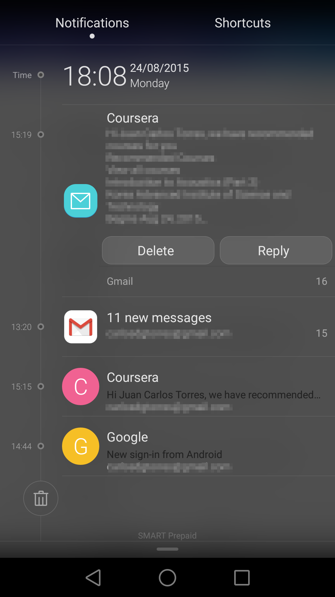 Of course, it's a modified Android experience. Take, for example, the notification tray. Instead of Android 5.0's single slideout panel, Huawei embeds two pages here, one for Notifications and another for Shortcuts. Quick Toggles, in other words. This arrangement sort of mirrors Sony's similar two-pane notification tray before it moved over to Android Lollipop. Coincidentally, iOS 8 also started using something somewhat similar but kept the distinction between Notifications and "Today" instead of settings shortcuts.