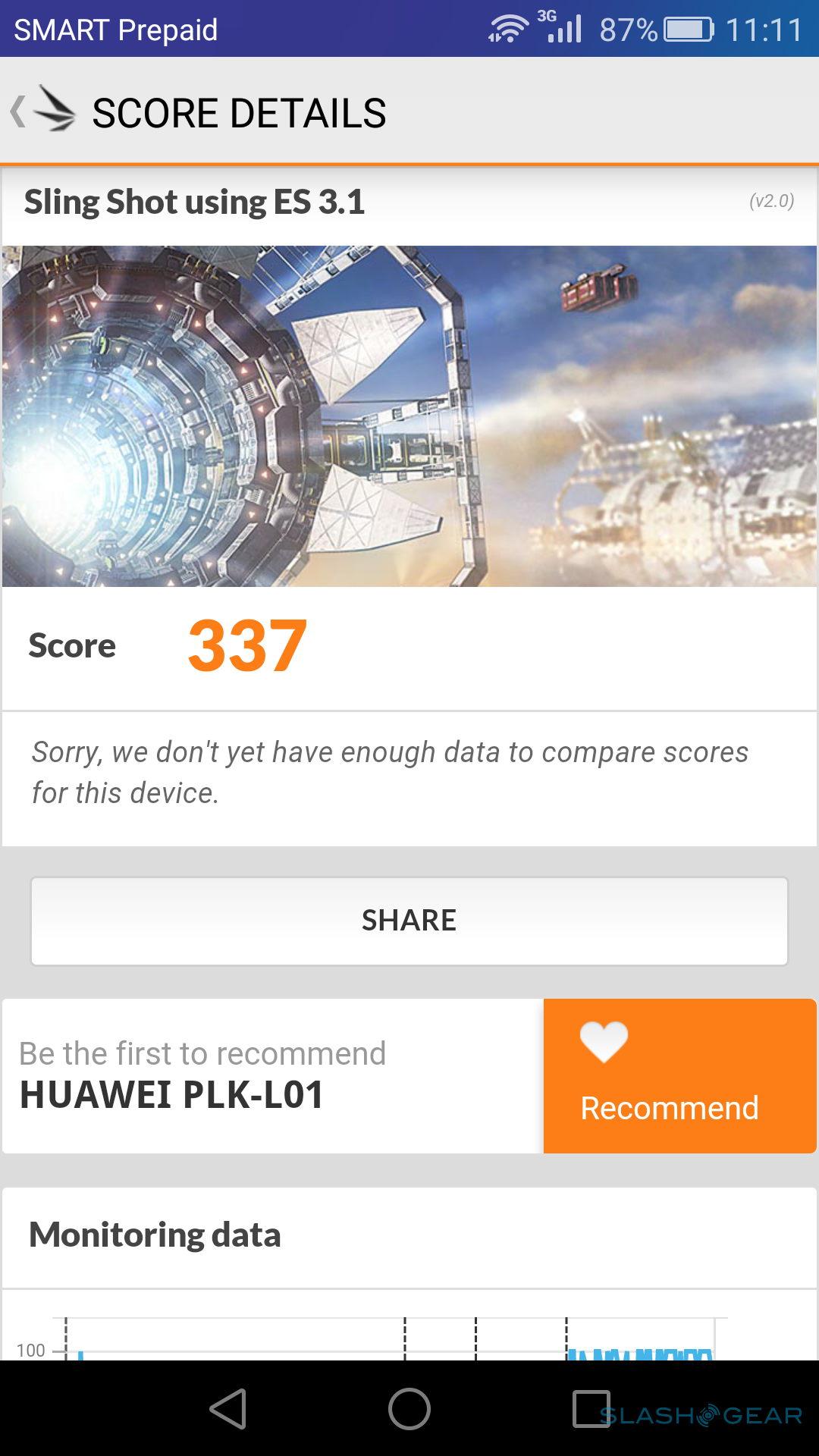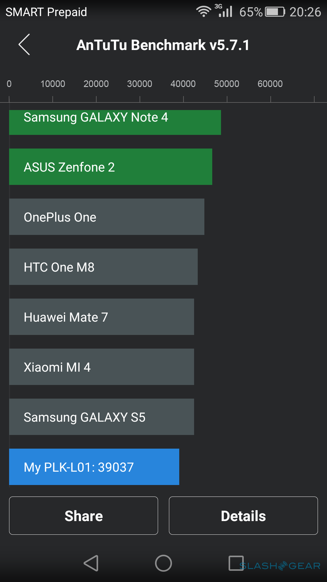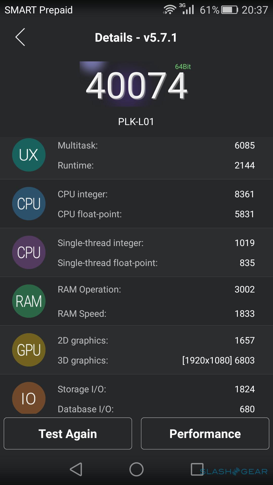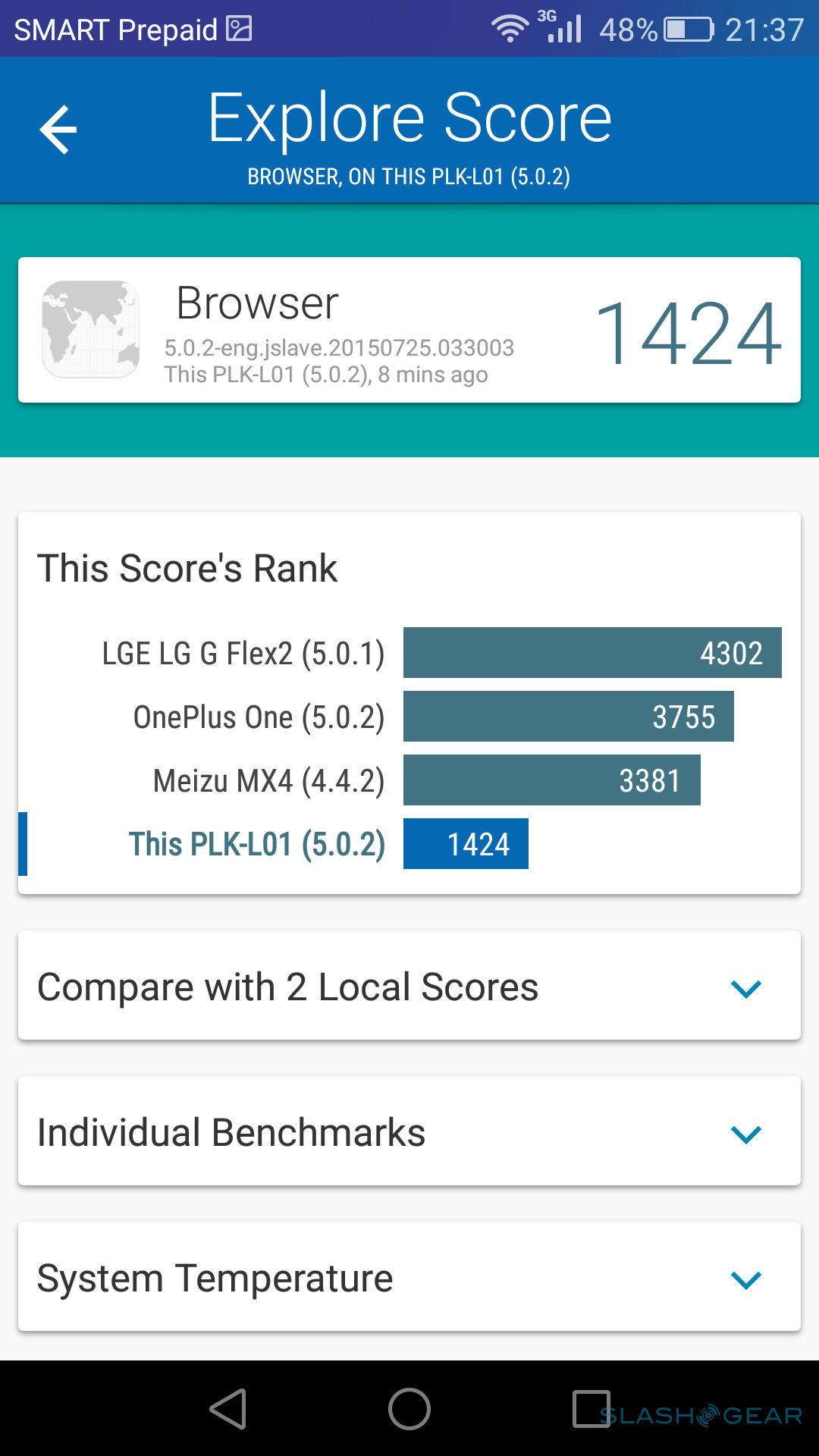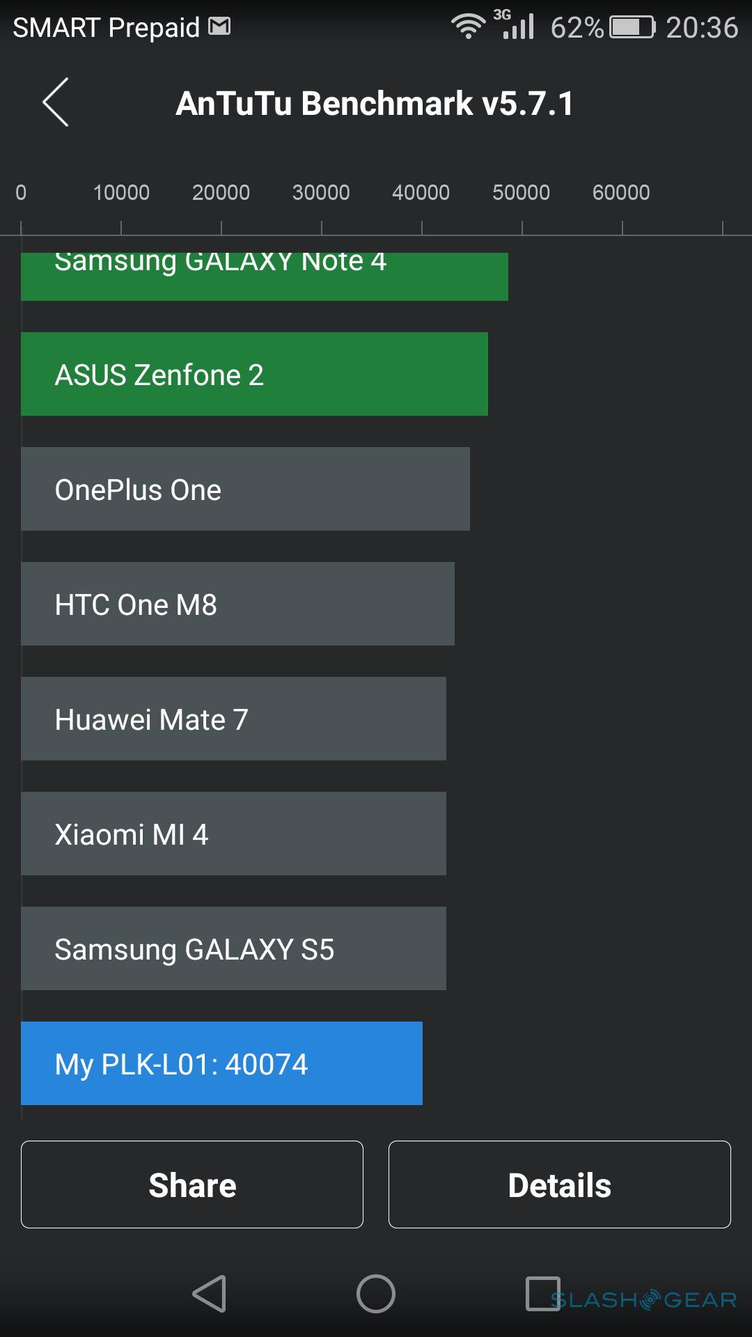 There is that expected discrepancy in each run. In both cases however, the Honor 7 clearly ranked a bit low, lower than even last year's Samsung Galaxy S5, which itself is way below the Galaxy Note 4. Still, AnTuTu does speak highly of the smartphone's capabilities overall, especially in gaming.