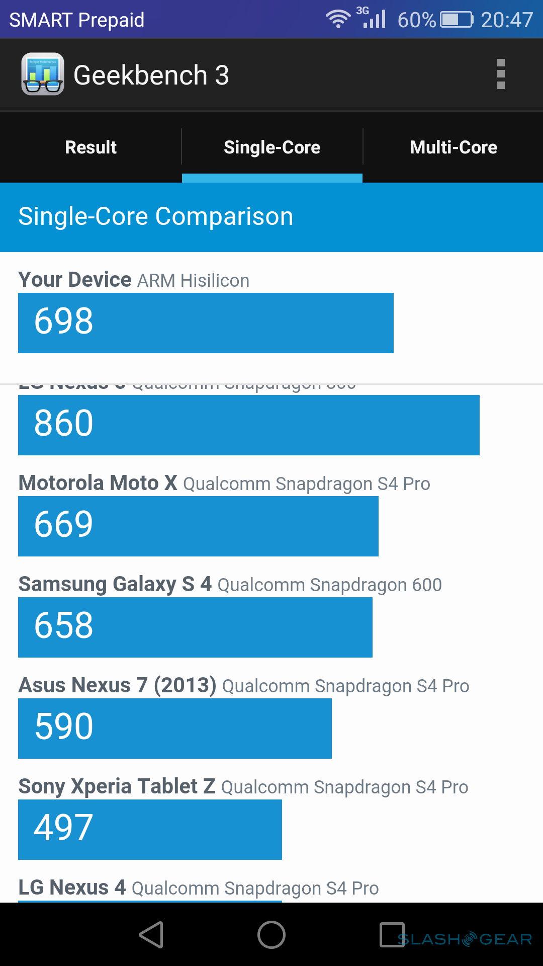 The Honor 7 doesn't do well in the single core performance area but rises to the very top when multi-cores are involved. Interestingly, in both AnTuTu and GeekBench, the list of smartphones ranked against the Honor 7 are not exactly the latest models. We can only imagine the smartphone comparing worse.