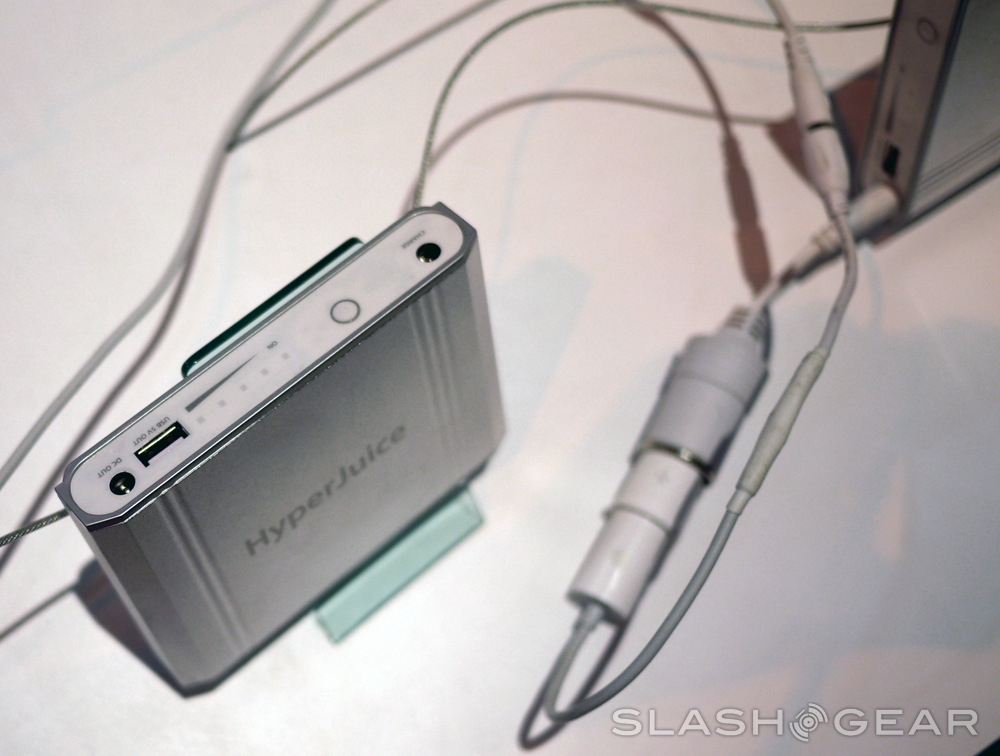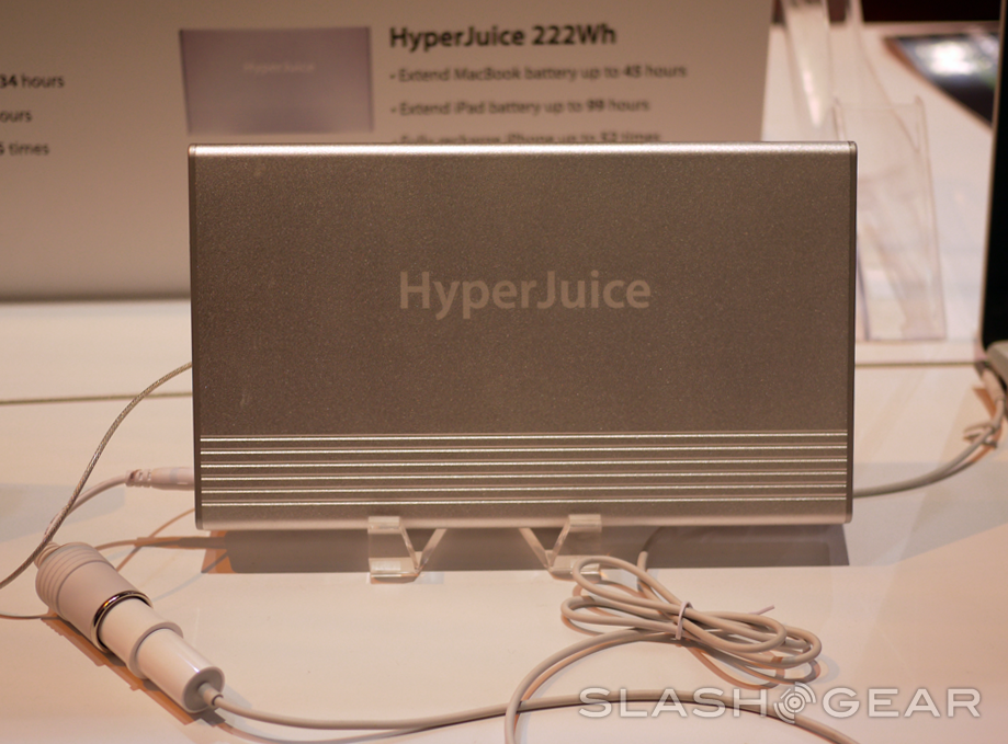 If you're listening to HyperJuice in any one of their many outlets for advertisement, you'll know that they are, indeed, the only external battery for the MacBook, working for any laptop in the Apple line, branded and shaped as such as well. What we got to see this year at CES 2012 was their current 2012 line of batteries sized at 150Wh, 100Wh, 60Wh, and the massive 222Wh. This group has one excellent value proposition for those of you out there in the field relying on the power of your MacBook with worries of a lack of battery hours and a need for a fashionable tote-along that matches the goods.