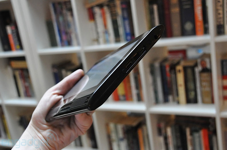 The little tablet also sports the NVIDIA Tegra T20 chipset. Engadget went hands on with the tablet and the thing looks even cooler sporting the silver speaker grates rather than the all black of the pics we saw previously. The device has 512MB of RAM, 512MB of ROM, 4GB of storage, 2G and 3G radios, and a 1.3MP front-facing camera in addition to the other specs I already mentioned.
