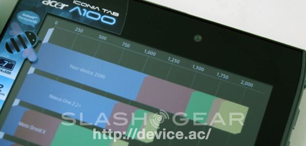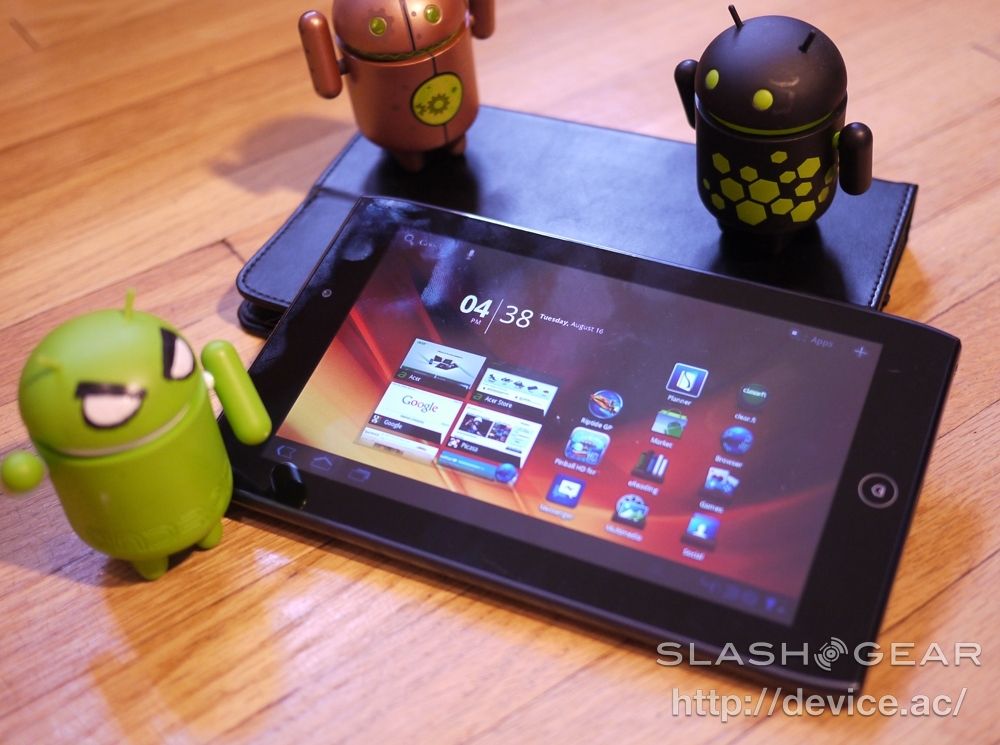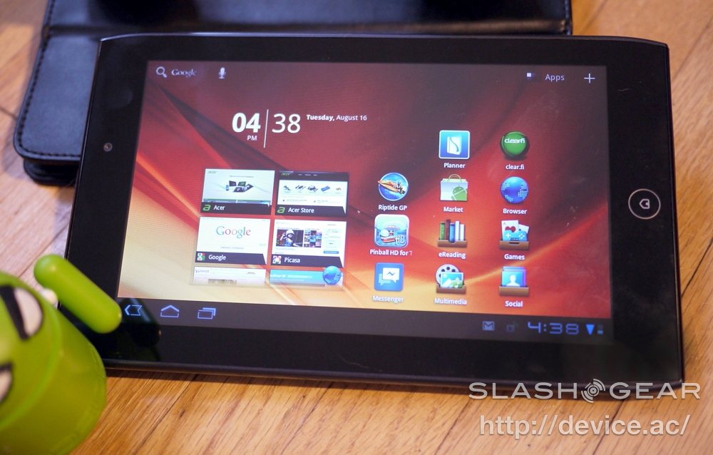 The Acer holds sway over all other Android tablet-classified mobile devices at this very moment because it's only slightly heavier than the original Galaxy Tab yet totes more than double the processor speed, has an almost vanilla* flavoring of Honeycomb, and it's got two fairly decent cameras on it, one on the front and one on the back. *Vanilla in this case means that there's really nothing added to the Android that Google's made save for some organizational apps and 3rd party bonus apps.