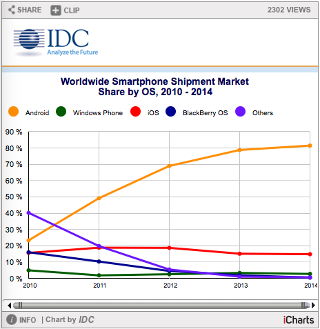 You probably already knew, but the severity of it might surprise you. According to IDC, who track smartphone sales and shipments (among other things), Android and iOS have teamed up to take over mobile in a big way. When looking back at 2014, IDC says Android and iOS have combined to power over 95% of the smartphones in existence. Even more surprising is that most of the remaining 5% is occupied by Windows Phone. According to IDC, BlackBerry has fallen way off the grid, too.