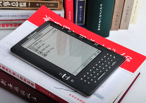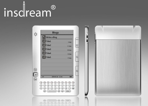 Battery life is up to two weeks of regular reading, and the display flips between portrait and landscape orientations at a button-push. There's also an MP3 player (with integrated mono speaker and 3.5mm headphone jack), text-to-speech in English and Mandarin Chinese, a calendar, image viewer and calculator, and search functionality. Insdream have also added a digital diary function – which they call a "Blog" – that can be password protected. No word at this point on price or availability.