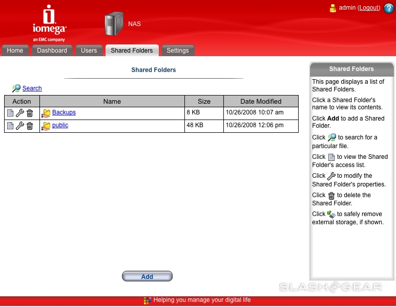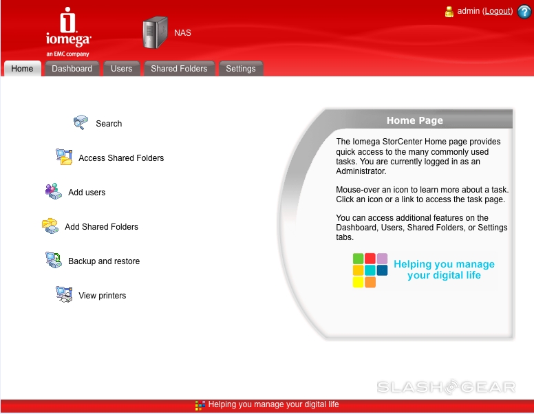 For a home user, however, the ix2 makes much more sense. The StorCenter is a capacious, fast and affordable way to centralize backup and, with the included software, pretty much automate the whole process. Being able to use it as a media server and to share printers is icing on the cake. Yes, the same downtime issue applies, but its impact is likely less serious in a home environment. Given the competitive starting price – $299.99 for the 1TB, $479.99 for the 2TB – they're flaws that are more easily overlooked.