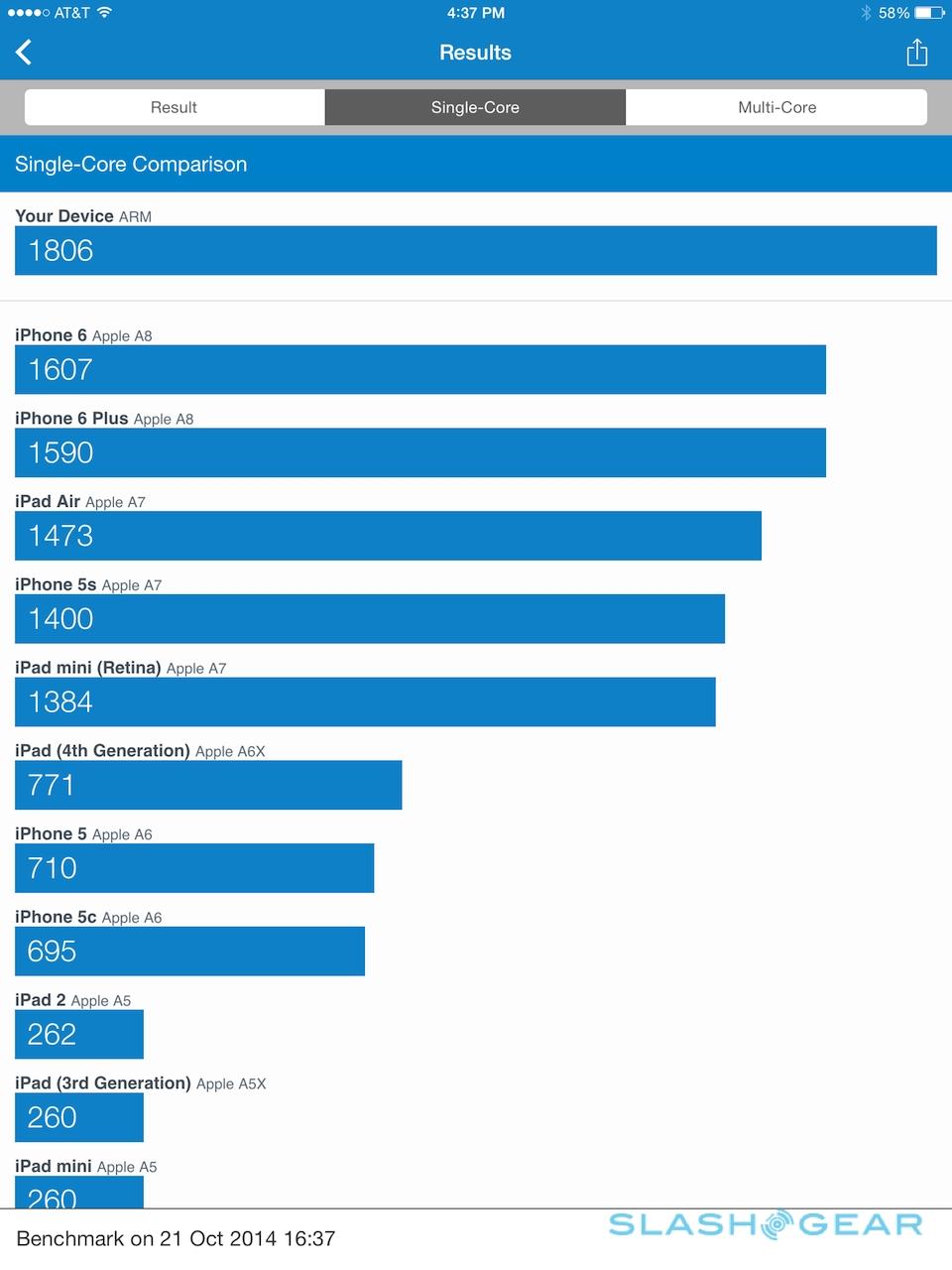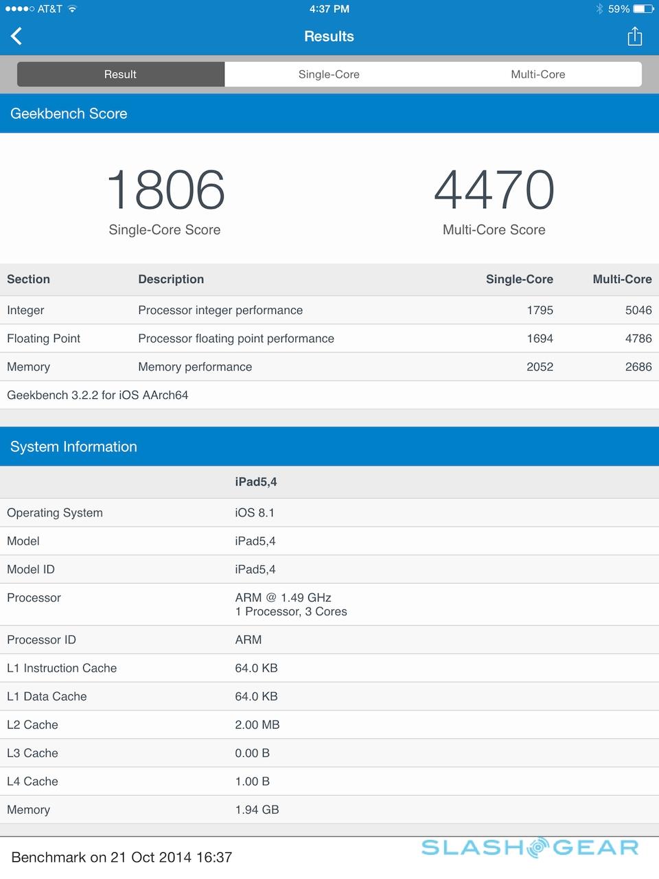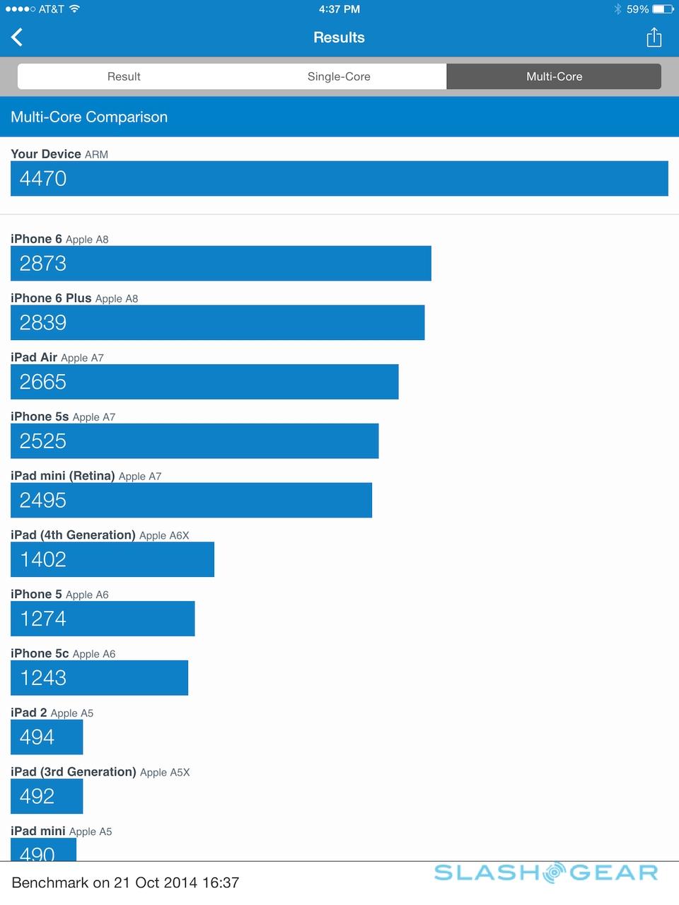In fact, a little benchmarking suggests iOS 8.1 may only be scratching the surface of what the iPad Air 2 is capable of. The A8X is a three-core chip running at 1.5GHz, Geekbench suggests, with 2GB of memory and a whopping 4,470 score on multi-core testing.