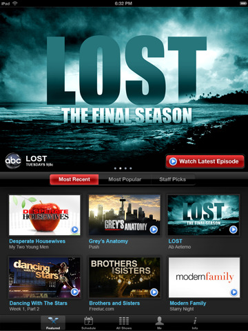 Other highlights include an ABC player, which allows you to stream video from the network over WiFi. Screenshots include Lost, Desperate Housewives and Grey's Anatomy, and apparently the app itself will be free (since it merely brings all the content from ABC.com into an iPad-friendly format).