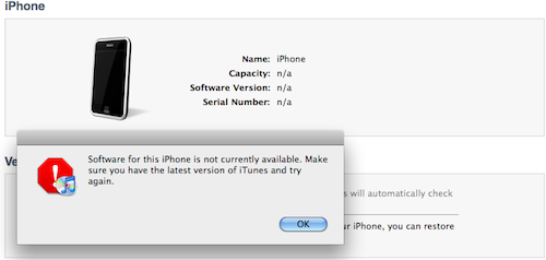 iTunes didn't open automatically, but once manually loaded the prototype was recognized as an iPhone in recovery mode; unfortunately it also warned that they would need an updated version of the app to actually do anything with the handset. Meanwhile OS X spotted a serial number – 002608C89DCA – but Apple's support pages don't recognize it. They also tried to run the Spirit jailbreak hack, but that didn't recognize the handset either. There's video of the handset here.