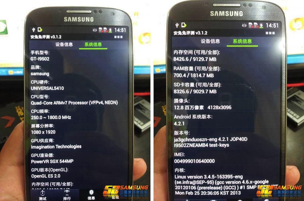All eyes are on Samsung's Galaxy S4 "Unpacked" event this Thursday to see what the company has for Android addicts, but new leaks in China suggest it'll be a powerhouse at least. What's said to be a dual-SIM Galaxy S4 for China Unicom has been spotted at forum 52Samsung, complete with some supposed benchmarking results tipping a quadcore 1.8GHz processor and Full HD display among other things. However, the Note II-alike casing may well be a red herring.