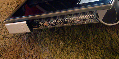 The MacBook donated its working internals, but not a screen – that was damaged – so a replacement LCD was sandwiched in-between it and the Intuos digitizer fascia. The optical drive still works, and the ports have been re-routed to a new side panel; there's only one available USB, though, as the second is used for a permanent hook-up to the digitizer.