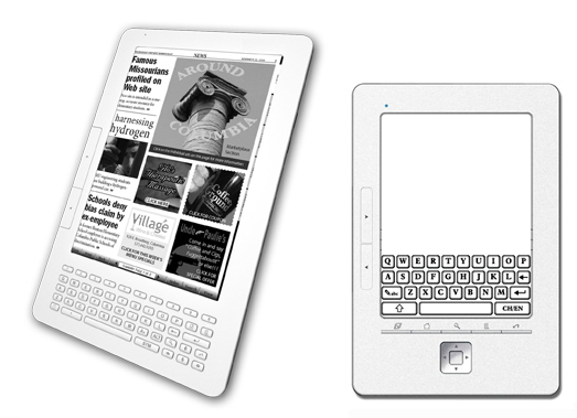Meanwhile the Jinke A9 has a larger, 9-inch 1024 x 768 panel – again with multitouch and 16 level grayscale – and doubles onboard storage to 4GB. It's 262 x 170 x 11.9 mm and 390g, but otherwise has the same features as the A6. Both can handle FB2, EPUB, PDF, DOC, DJVU, RTF, TXT, HTML, PPT, BMP, JPG, PNG, GIF, TIF and MP3 files, including those with Adobe DRM. Jinke are also showing renders of a second version of the A9 with a QWERTY keyboard.