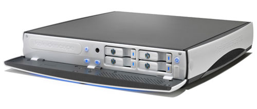 The server box uses four 500GB mini disc cartridges that has enough storage space for storing 225 DVD movies and offers RAID-K parity for data protection. Multiple Cinema One devices can be grouped for more storage space if needed. The device has HDMI, component, S-Video, and composite video output and digital coaxial, optical, and analog stereo audio outputs.
