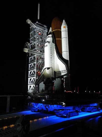 The two-man team who build the Nasu Space Center are apparently now taking part in an attempt to build the tallest LEGO tower ever made. That's unlikely to have as many flashing lights (unless they need to warn low-flying aircraft away from its tip) but will be much higher than the shuttle diorama, which stands just a few feet tall.