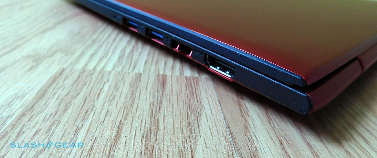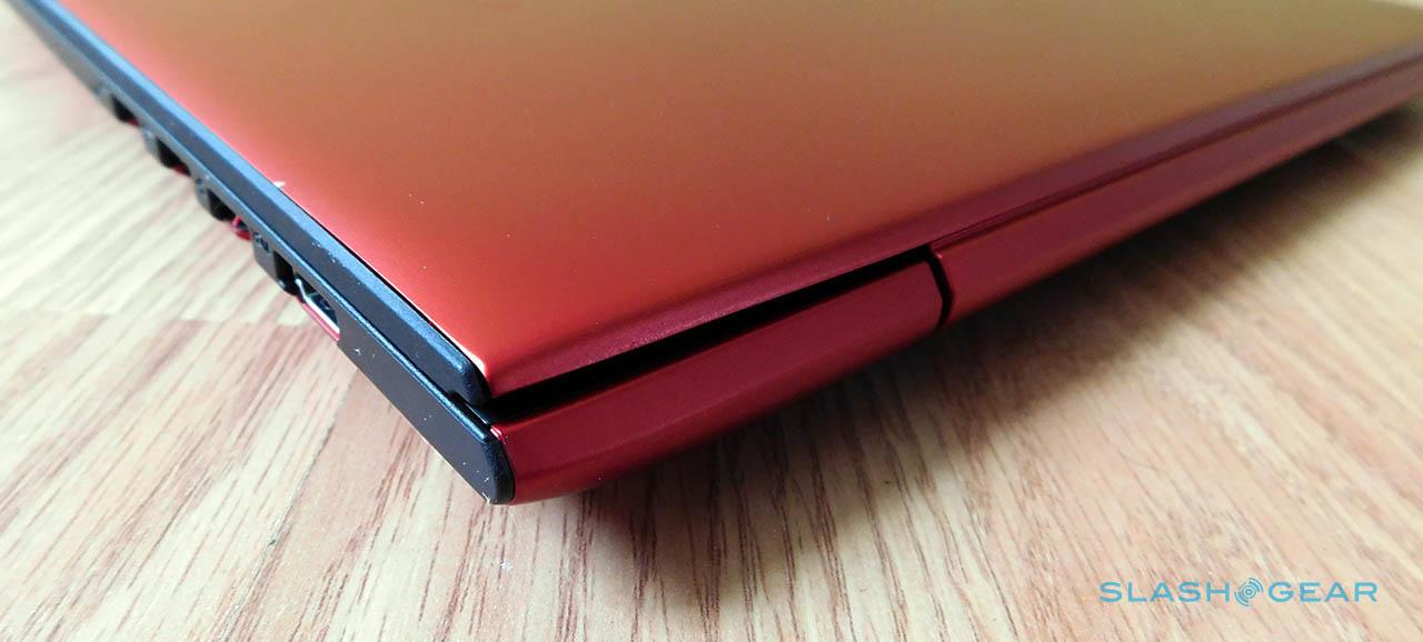 Those who dislike plastic laptops will love the Ideapad 300S' all-metal exterior shell, the sensation of which is both smooth and cool to the touch. The laptop feels very dense and durable when held, and comes with a flashy, bold bright-red color option further refining an already notable design. Inside is more casual, with mostly black wrist rests and bezels touched by subtle red accents. The interior black elements overlap the exterior edges just enough to provide contrast when the lid is closed, a purely aesthetic design choice.