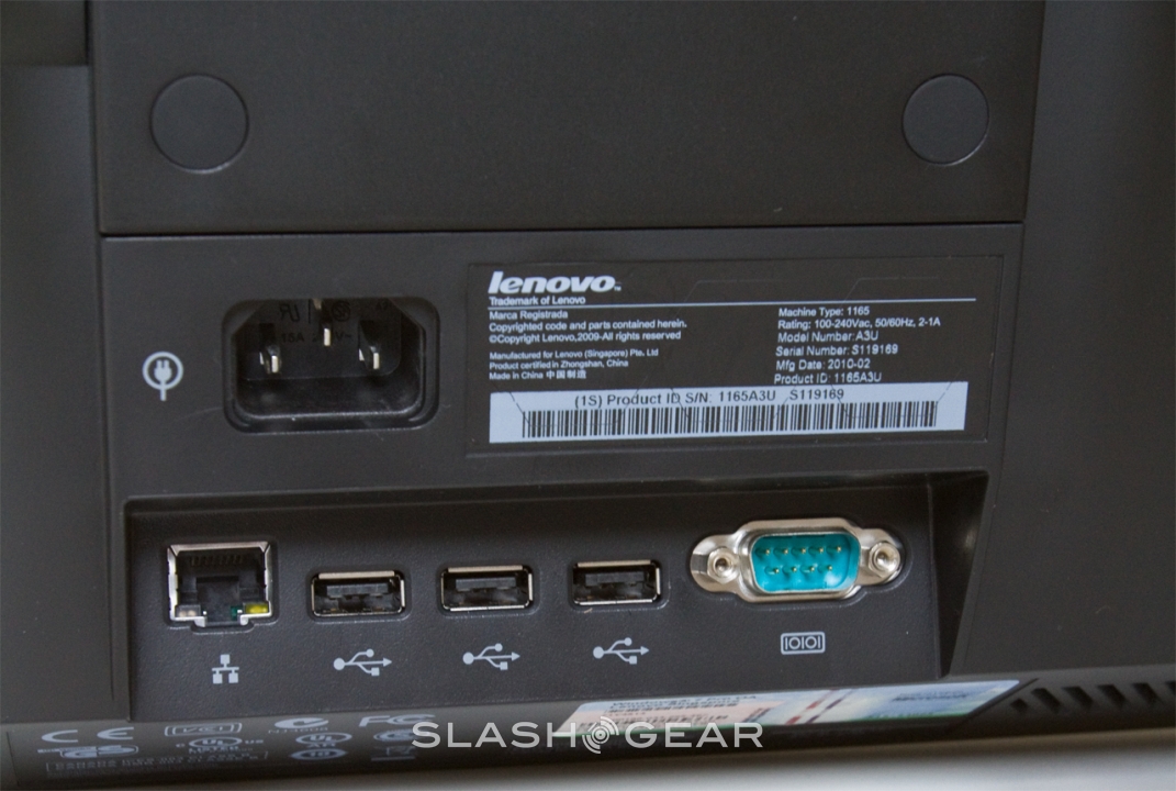 Hidden behind the 19-inch 1,440 x 900 display is a 2.93GHz Intel Core 2 Duo E7500 processor together with 2GB of memory and a 320GB hard-drive. Graphics are courtesy of Intel's GMA 4500 chipset, and there's a side-mounted DVD burner, integrated stereo speakers, webcam and a total of six USB 2.0 ports. Network connectivity includes WiFi b/g/n and gigabit ethernet, though Lenovo don't offer either FireWire or eSATA for high-speed data connections.