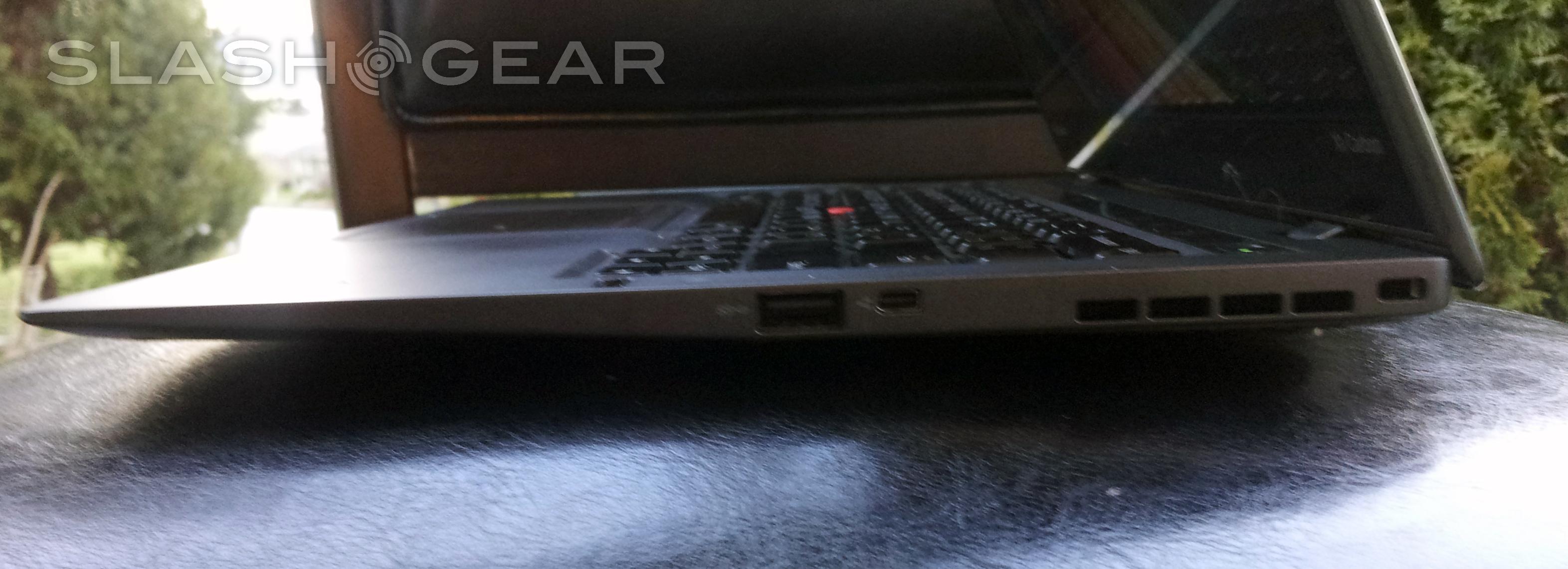 The X1 has Intel Haswell under the hood, with Core i5 1.9GHz and Core i7 2.10GHz offerings being available. Graphics come by way of Intel HD Graphics 4400. Rounding it all out is a 1.3MP 720p webcam above the display, a backlit keyboard, 5-row panel on the keyboard alongside the familiar trackpoint, and Dolby Home Theater v4 (speakers are on the tapered portion of the underside, which helps prevent muffling despite being located on the bottom of the system).